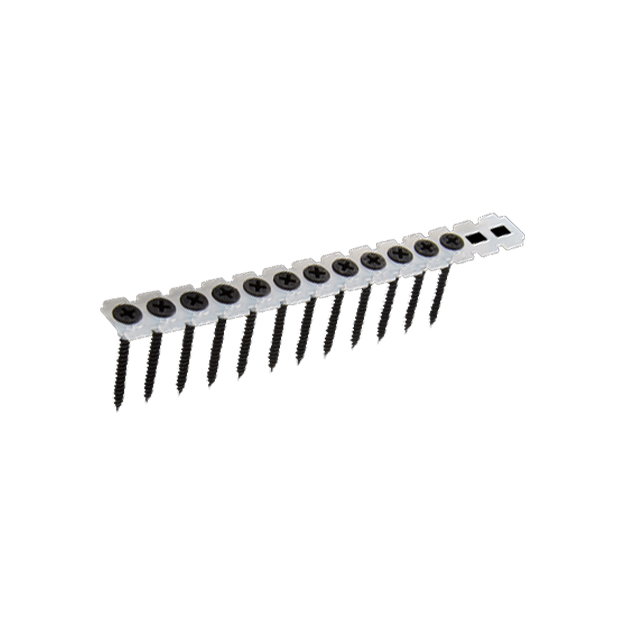 British Gypsum Collated Drywall Screws are the quick and secure way of fixing plasterboard linings to lower gauge metal or timber frames using an automatic screw gun. Plasterboard linings must be fixed securely to achieve optimum fire and acoustic performance. 25mm British Gypsum Collated Drywall Screws allow safe and easy fixing of single layer 12.5mm and 15mm boards to 0.8mm maximum gauge metal framing. Supplied in strips for faster fixing, these corrosion resistant screws give you a quick and simple way to maintain system integrity.